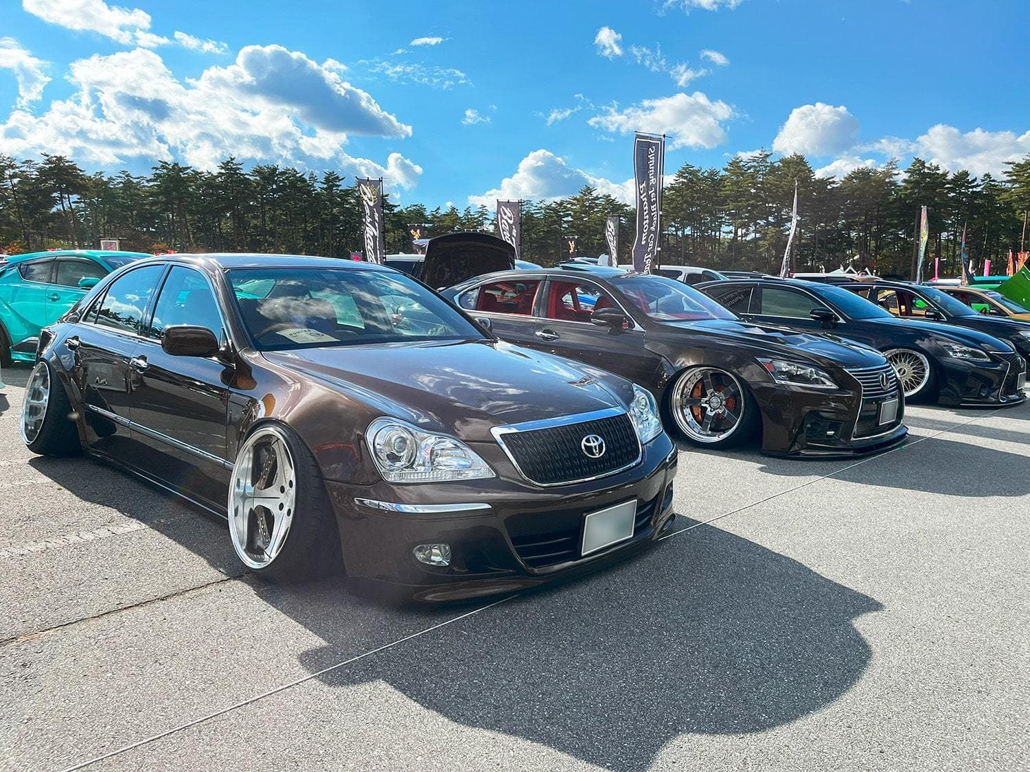 朝晩冷え込む晩秋の富士山パーキングにて行われた「ROW FES vol.2」にお邪魔しました。雨上がりだけあって空気が透きとおり、そこから見える山嶺は既に雪景色。そんな美しい景色に負けじと集まった数百台のROWENファンたちは、ドレスアップコンテストのために皆気合が入っておりました。今回はモーターゾーンのテレビ撮影もあり、その中ではROWENの新型エアロパーツを社長と一緒に紹介します。さらに同社が過去最大級のブースを出展する東京オートサロンで改めて公開するとの事でしたので皆さん是非お楽しみに!