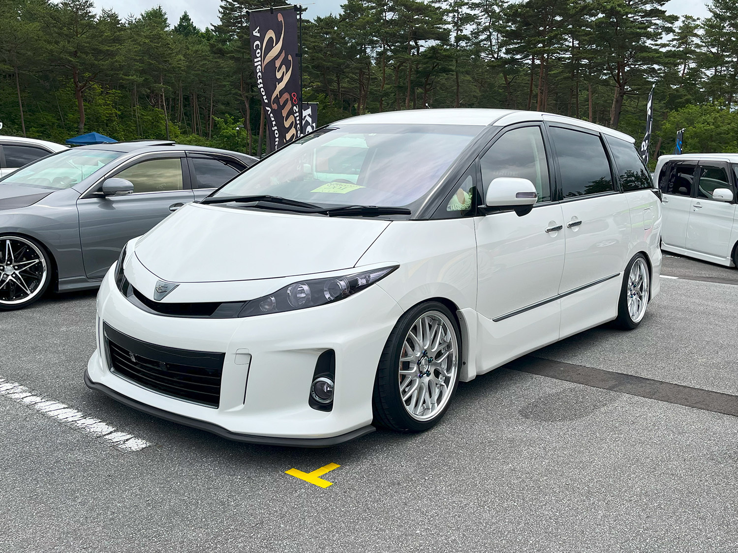ROW FES vol.3 会期 2024年6月9日(日) 会場 山梨県 富士吉田市 | 富士山パーキング 6月にしては快適な気温に恵まれた富士山麓パーキングにてカーカスタムブランドROWEN主催のドレコンイベント「ROW FES」が今年も開催されました。このイベント、ROWEN主催といってもROWENパーツ限定ではなく、クラブのオーナーさん曰く「イベント初心者でも参加しやすい」とのこと。会場には約300台のカスタムカーが集結し、仲間や家族と和気あいあいの雰囲気で、ビンゴ大会やじゃんけん大会で盛り上がりました。
