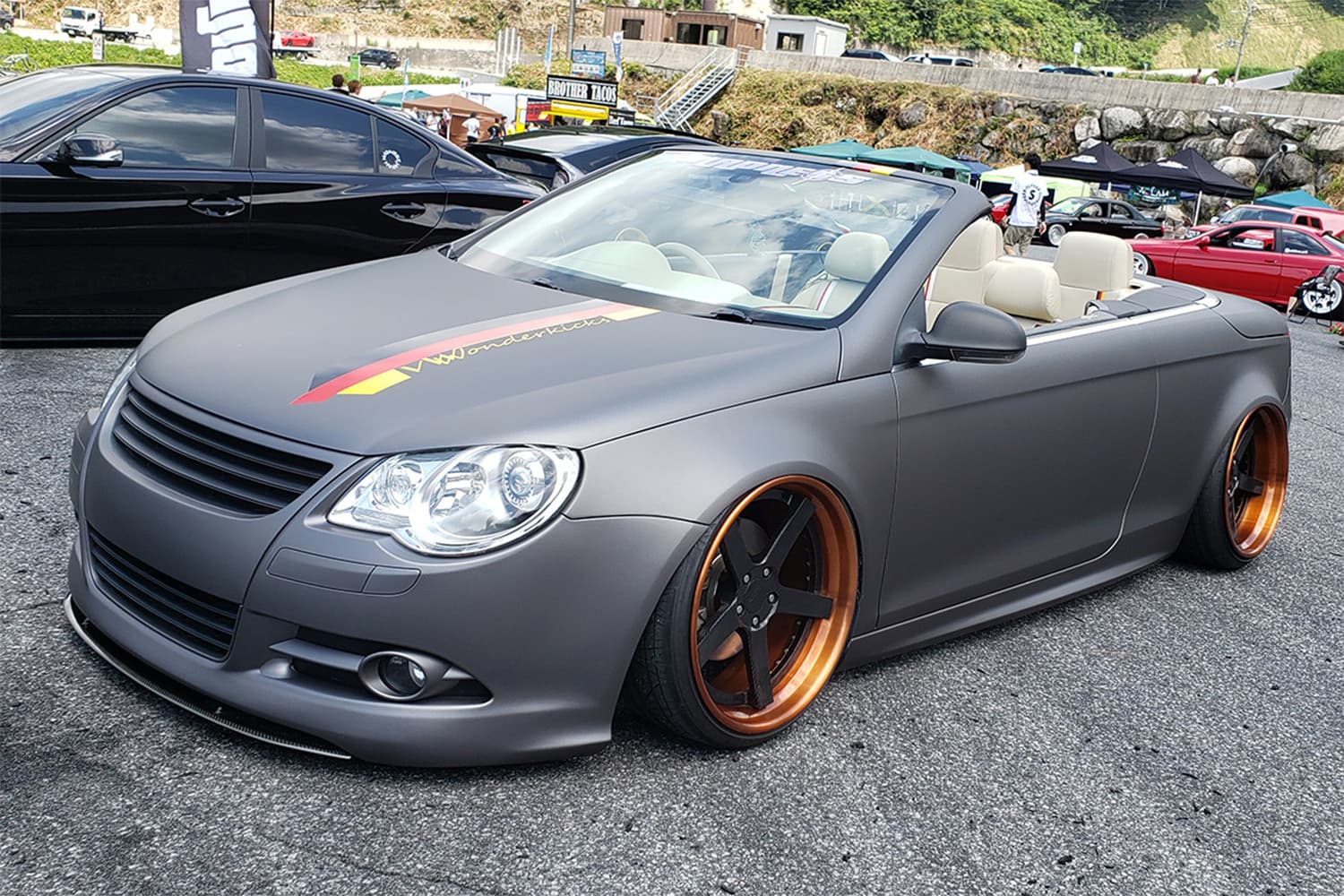 このイベントにはローダウンフォルムの美しいクルマが約200台集まり、カスタムを披露していました。他のイベントと比べ、スポーツカーやクーペ/セダンが多い印象で、ラッピングや派手目の外装パーツに頼らずシルエットを完成させているクルマに注目。ごまかしがきかないのでボディとホイールのサイズとデザイン、そして車高のバランスが特に難しかったかと思います。また、スポコン好きにもたまらないカスタムカーイベントでしたよ!