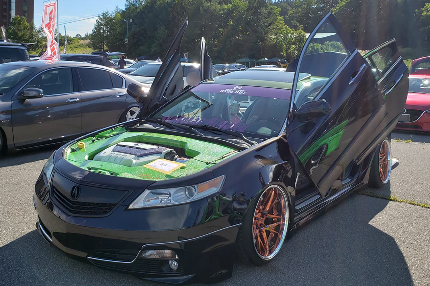 第11回 北のドレコン 会期 2019年9月1日(日) 会場 青森県 鰺ヶ沢町 | 青森スプリングスキーリゾート 本州最北の青森県で開催される「北のドレコン」は、今回で11回目の開催を迎えた人気のカスタムカーイベントだ。ミニバンからセダン、軽カーまで各種ドレスアップカーがカスタムを披露。訪れた人の目を引くど派手なクルマの他に、車種のイメージに合わせた一見控えめに見えるエアロとオシャレなホイールが特徴のクルマ、まだまだ人気のあるホンダの旧車カスタムなど車種と年代の幅が広く楽しい「ドレコン」でした。