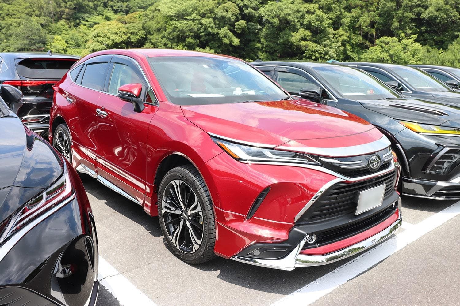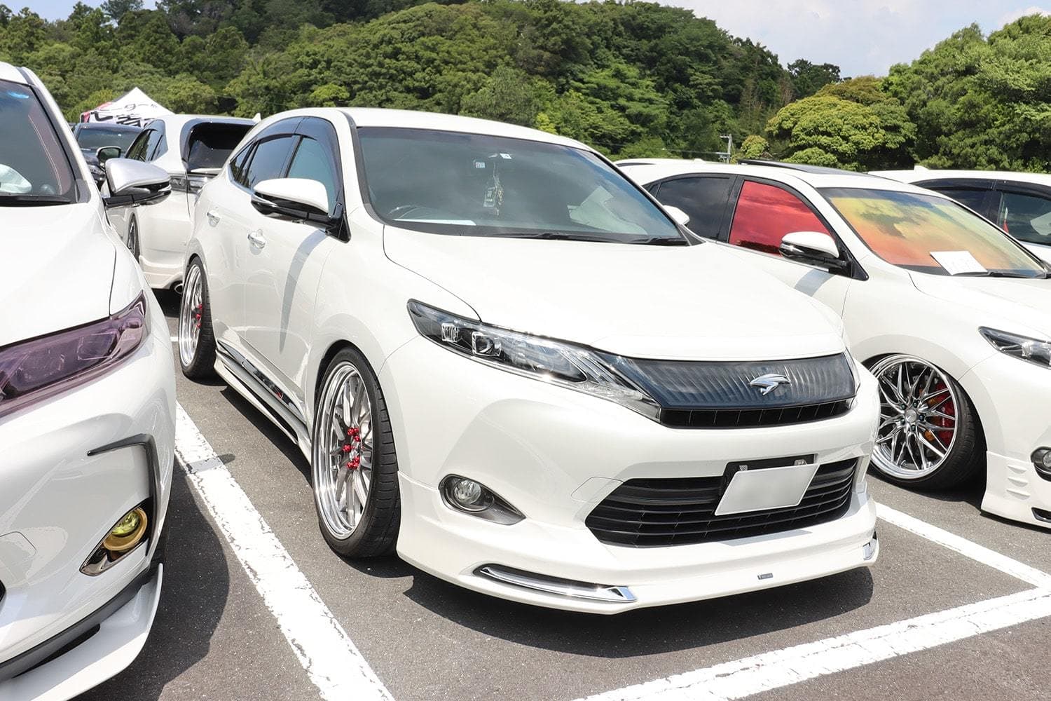 オールハリアー全国オフ会 会期 2022年6月4日(土) 会場 静岡県 袋井市 | エコパアリーナ駐車場 暑い中開催されたハリアーオフ会。OBOGも合わせて約300台ほどの車両が集まっていました。80・60系はもちろんのこと、30系も来ていましたね。会場を見渡して思ったのは、ユーザーさんたちが若い!若者に人気があるって嬉しいですね。比較的ライトなカスタムを施したユーザーが多かったためか、各エアロパーツメーカーのブースで熱心に説明を聞いているユーザーさんをよく見かけました。ハリアーのカスタムシーンはもっと盛り上がっていきそうですよ!