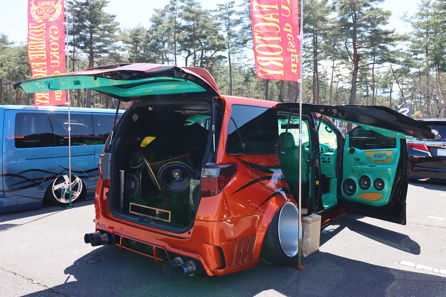 第26回 春のドレスアップミーティング♪春ドレ2023 会期 2023年4月9日(日) 会場 山梨県 富士吉田市 | 富士山パーキング 今年もやってまいりました。春ドレ!朝はひんやりしていたものの、日が昇ると春らしい陽気に包まれて正にイベント日和。会場には、イベントでお馴染みの車両から始めましてのクルマまで多くのドレスアップカーが来場。外装ももちろん内装にも気合が入った車両が多く、シートの張り替えやオーディオカスタム等目をみはるモノが多かったですヨ。コロナ禍もほぼ収束し、家族連れでワイワイ楽しんでいる様子が印象的でした。