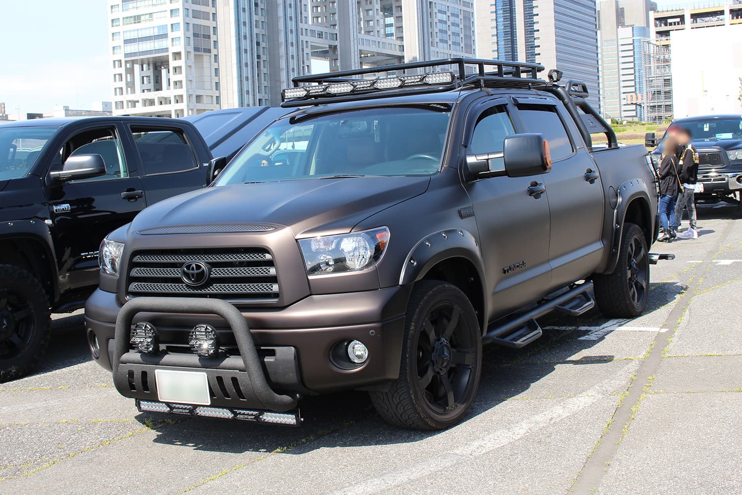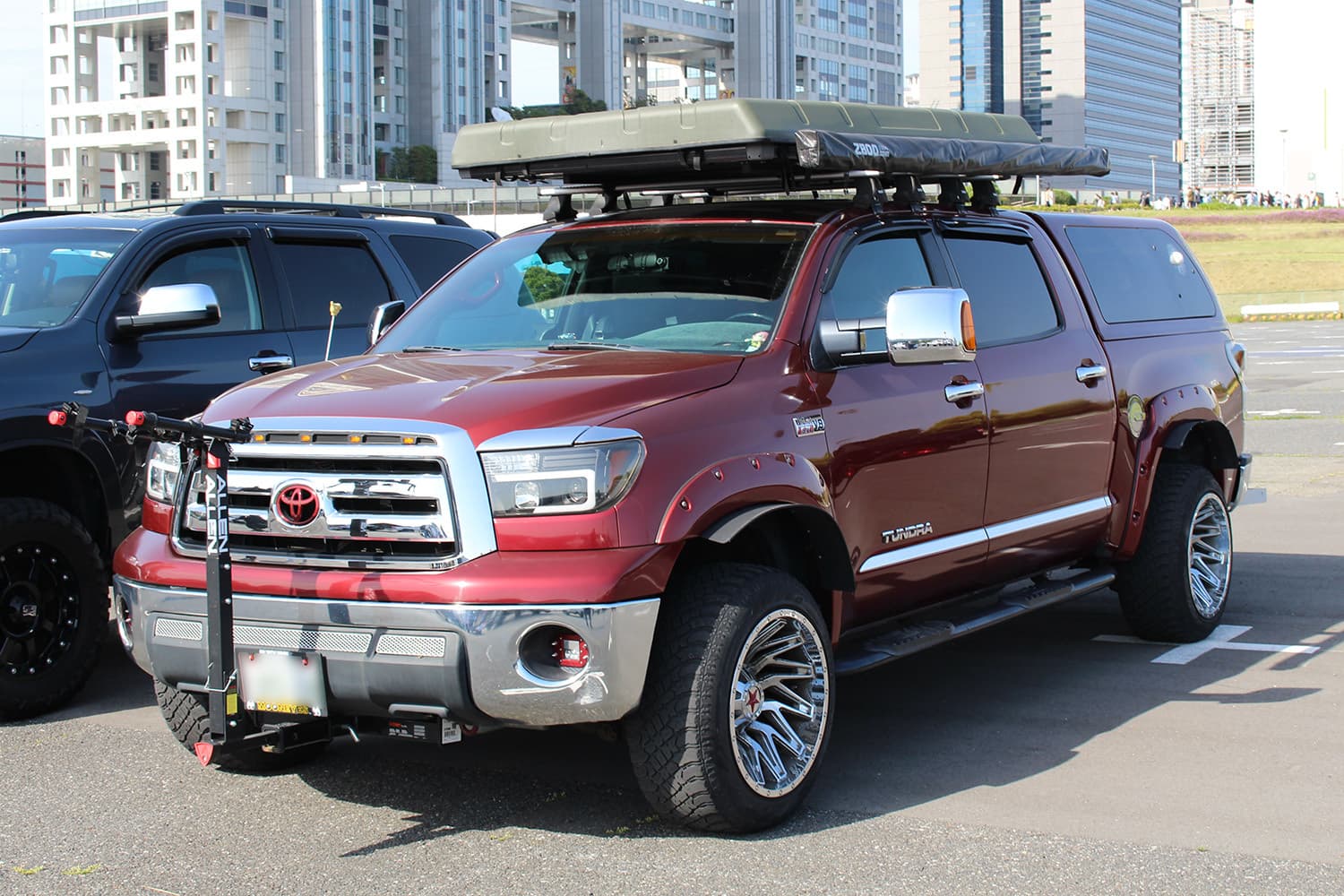 タンドラ&セコイア オンリーミーティング 会期 2023年4月23日(日) 会場 東京都 江東区 快晴で気持ちが良いお台場にて、USトヨタのタンドラ&セコイア オンリーミーティングが行われました。両車とも見た目は似通っていますが、タンドラはピックアップトラック、セコイアは7〜8人乗りの3列シートワゴンです。アメリカのフルサイズ車が数十台集まるだけあってその場の圧が凄かったです。またそんな中でも個性あるドレスアップ車両も多くあり、こだわりのあるオーナーさん同士の意見交換が盛んに行われていました。